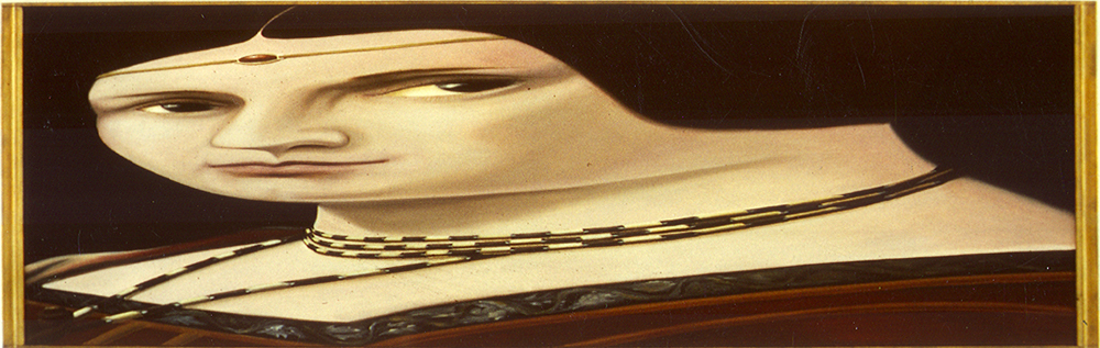 Anamorphose nach Leonardo da Vinci`s "La Belle Ferronnière", Oel auf Lwd.